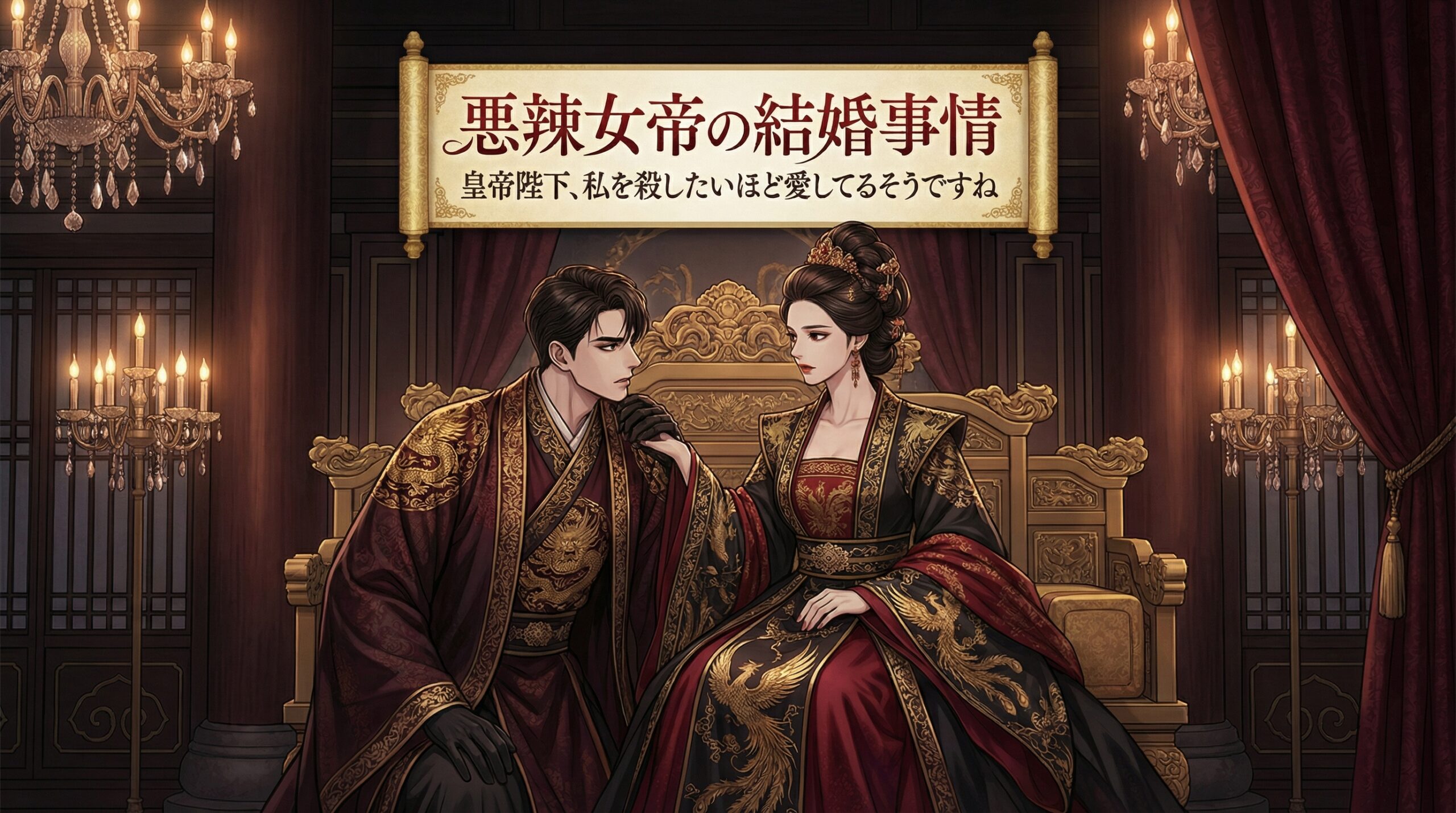 近年の人気作品を見ると、「悪女」「悪役令嬢」と呼ばれるヒロインが前世や周囲からの不当な評価をひっくり返していく逆転劇が大きなトレンドになっています。本作のタイトルにある「悪辣」という言葉も、ヒロインが周囲から不当に貶められている状況を示唆しており、そこから這い上がるカタルシスが期待できるでしょう。「殺したいほど愛してる」という矛盾したフレーズからは、皇帝側にも複雑な事情がありそうで、ヤンデレ寄りの執着愛やすれ違いのドラマが想像されます。