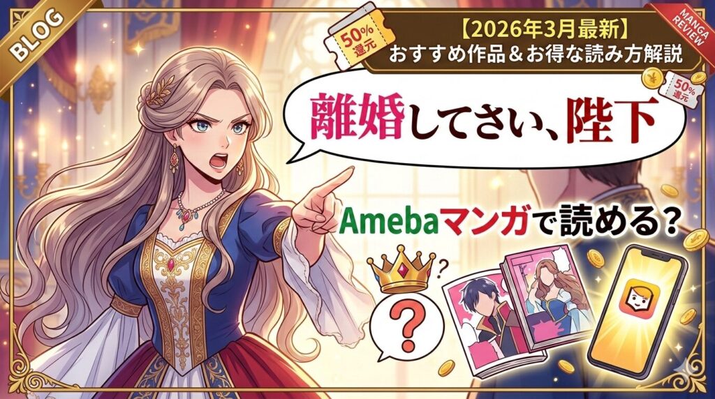 「離婚してください、陛下」で検索して出てくる作品はAmebaマンガで読める?おすすめ作品とお得な読み方を徹底解説【2026年3月最新】 「離婚してください、陛下」で検索すると、皇帝・国王に離婚を突きつけるヒロインが主役の「陛下×離婚」系ファンタジー... -