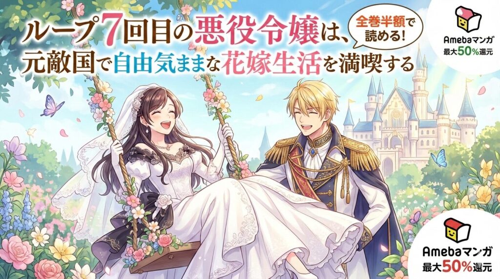 「ループ7回目の悪役令嬢は、元敵国で自由気ままな花嫁生活を満喫する」は全巻いくら?Amebaマンガなら最安で読める【2026年2月】