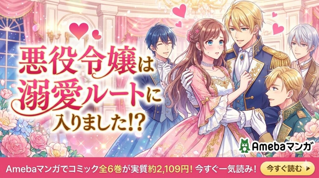 「悪役令嬢は溺愛ルートに入りました!?」はAmebaマンガで全巻読める!コミック全6巻を最安で一気読みする方法【2026年2月】