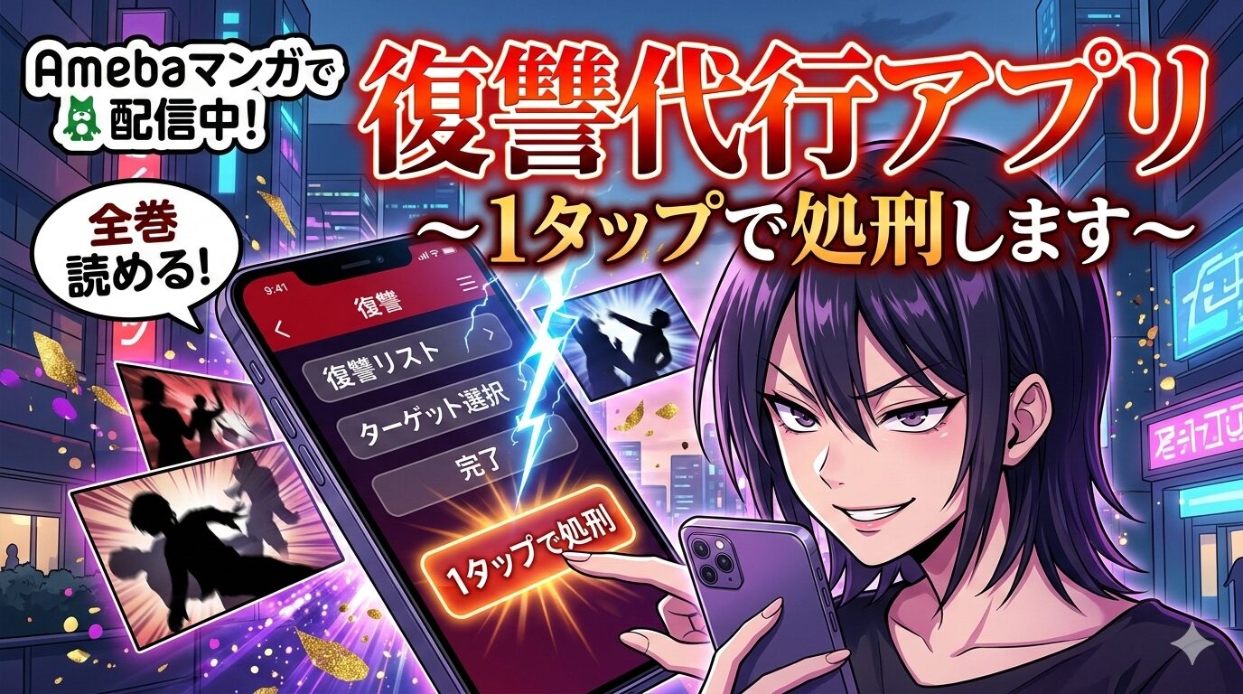 2026年2月23日時点で、「復讐代行アプリ~1タップで処刑します~」はAmebaマンガにて単行本版(全3巻)・分冊版(全19話)の両方が配信されています。分冊版は7冊分が無料で試し読み可能、残り12冊も50%還元の対象です。なお、分冊版第20話は2026年2月27日に配信予定となっており、現在も連載が続いている人気作品です。