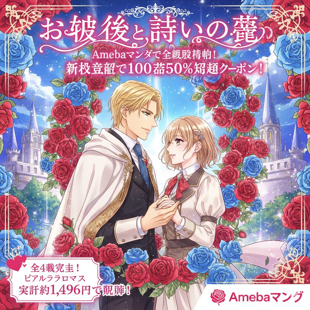 「お兄様と誓いの薔薇」は全4巻すべてがAmebaマンガで購入可能です。完結済みなので、最終話まで一気に読み切ることができます。通常価格は全巻で2,992円(税込)ですが、初回限定の100冊まで50%還元クーポンを適用すれば、実質約1,496円まで負担を抑えられます。まとめ買いとの相性が抜群で、全4巻を最もお得に読める方法のひとつです。