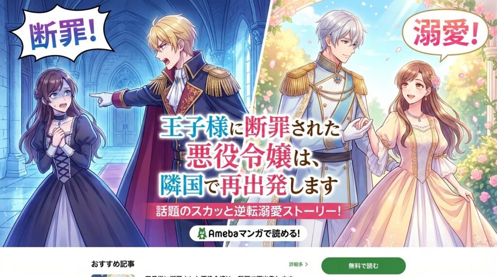 「王子様に断罪された悪役令嬢は、隣国で再出発します」はAmebaマンガで読める?配信状況とお得な読み方を徹底解説【2026年2月最新】