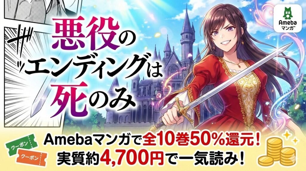 「悪役のエンディングは死のみ」はAmebaマンガで全巻読める?漫画全10巻を最安で一気読みする方法【2026年2月最新】