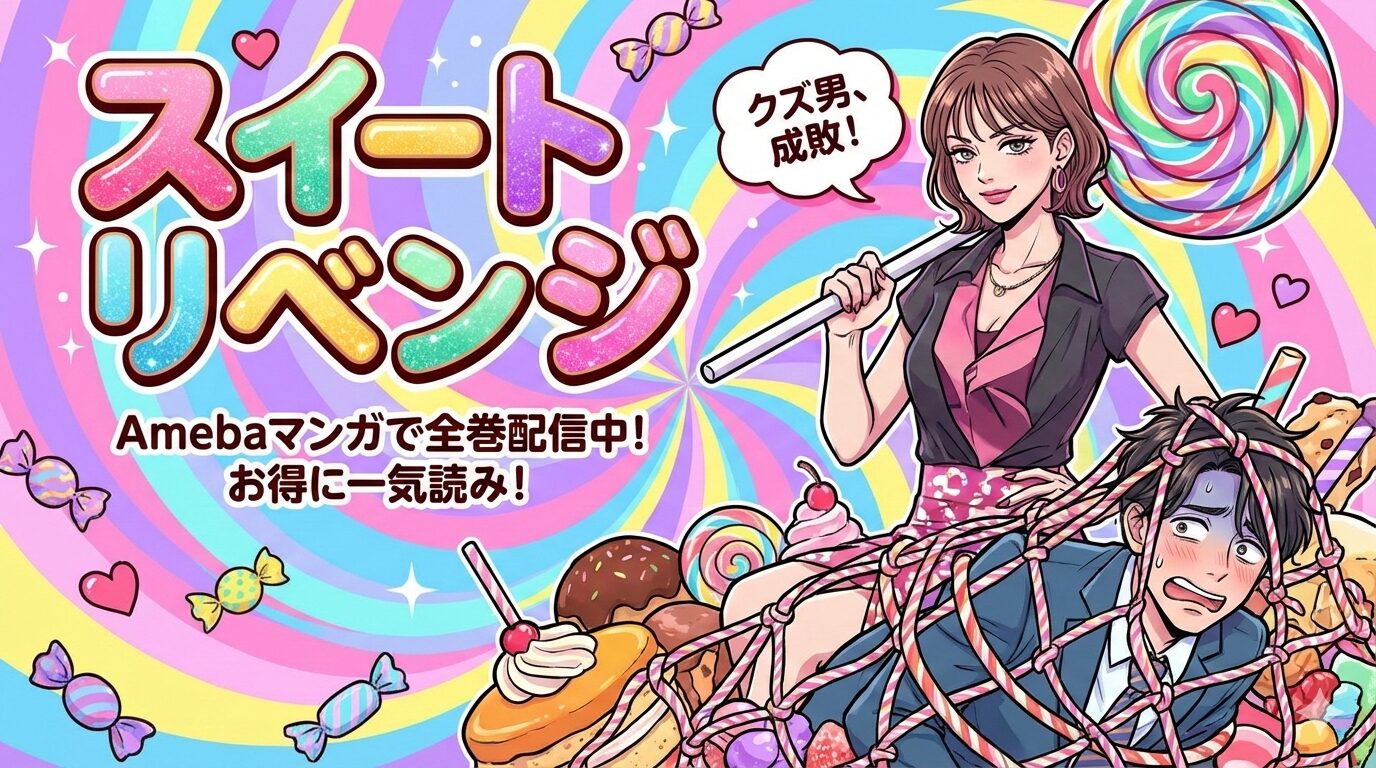「スイート リベンジ」を全巻まとめて読みたい方に結論からお伝えします。本作はAmebaマンガで全146巻(完結済み)が配信中です。新規登録時の「100冊まで50%即時還元クーポン」を使えば、定価16,060円(税込)のところ実質約10,560円で一気読みできます。クズ男を華麗に成敗する痛快復讐劇を、今すぐお得に楽しみましょう。